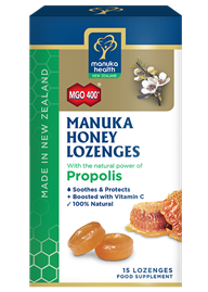 These soothing lozenges combine the goodness of premium New Zealand Manuka honey, the natural protecting power of Propolis and the added boost of Vitamin C.