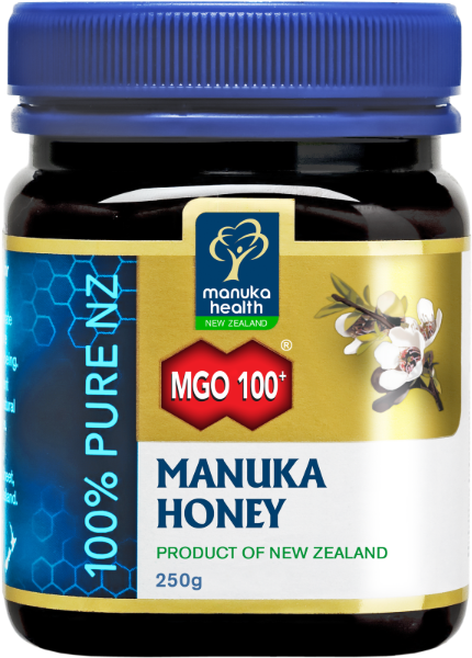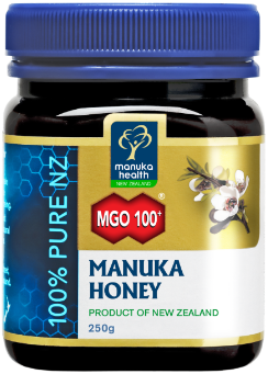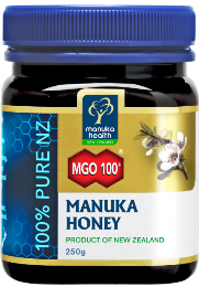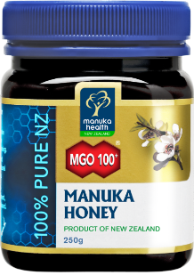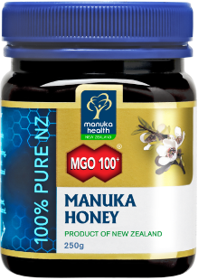 Premium New Zealand MGO™ 100+ Manuka Honey. Certified for natural methylglyoxal content (minimum 100mg/kg) – scientifically proven to be a key natural compound in Manuka honey