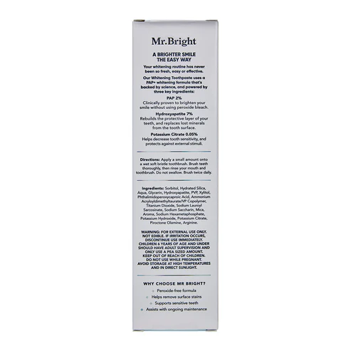 Experience the brand new Mr Bright PAP+ Peppermint Toothpaste Tube.